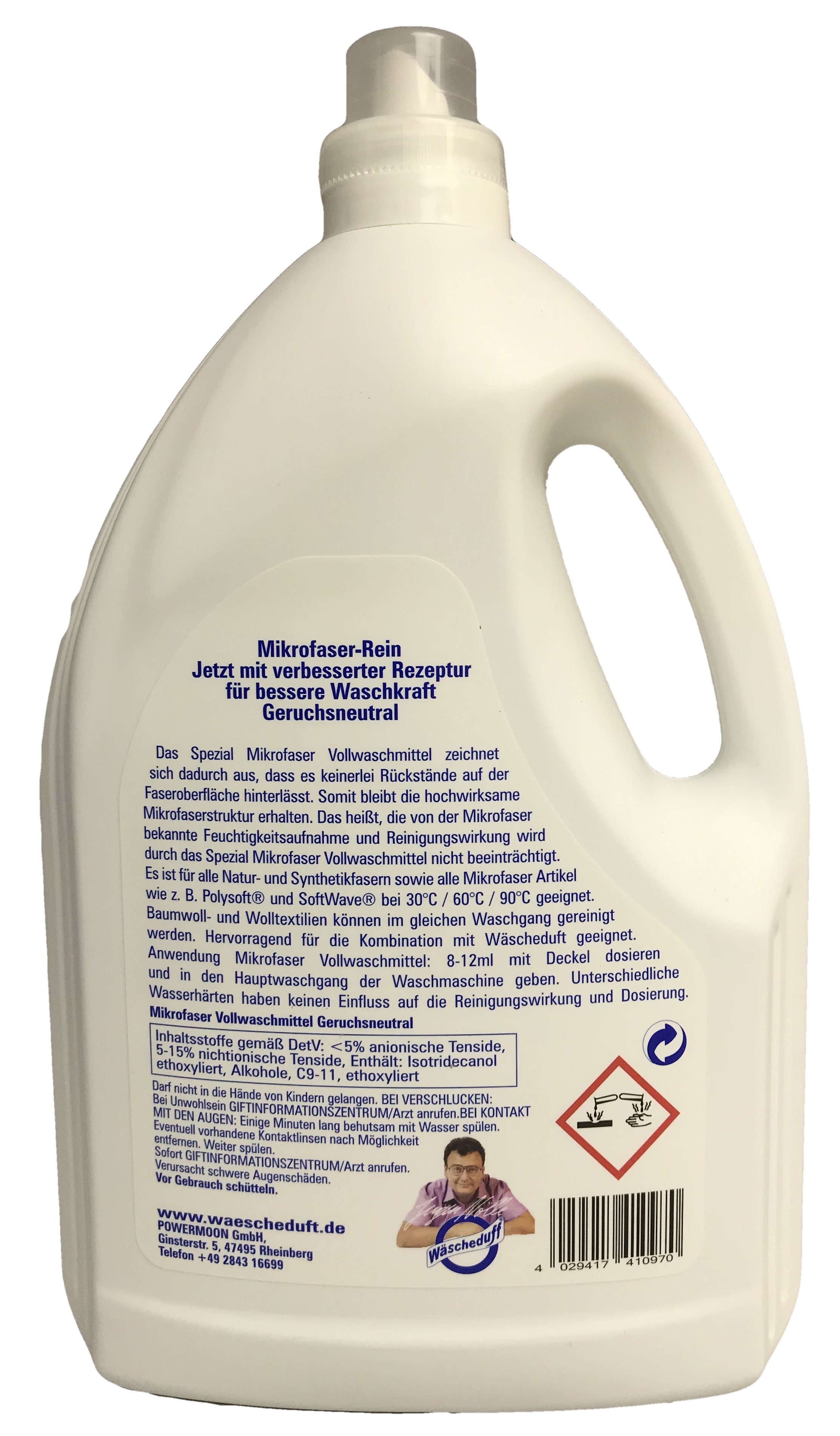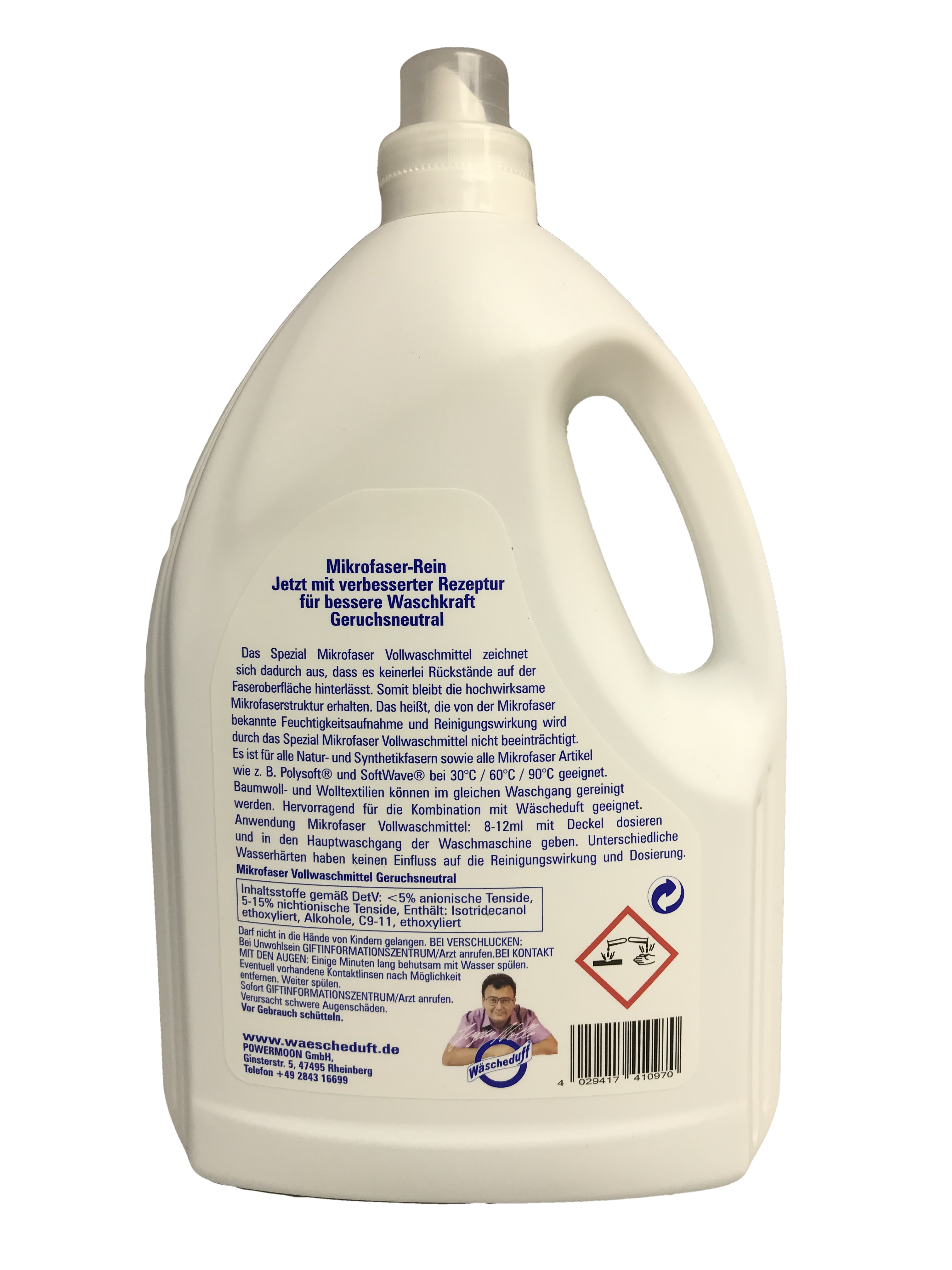 Das Spezial Microfaser-Vollwaschmittel zeichnet sich dadurch aus, daß es keinerlei Rückstände auf der Faseroberfläche hinterläßt. Somit wird die hochwirksame Microfaserstruktur erhalten. Das heißt, die von der Microfaser bekannte Feuchtigkeitsaufnahme und Reinigungswirkung wird durch das Spezial Microfaser Vollwaschmittel in keinster Weise beeinträchtigt. Das Spezial Microfaser Vollwaschmittel ist für alle Natur- und Syntetikfasern sowie alle Micrfaserartikel geeignet.Hervorragend für die Kombination mit den Düften der Wäscheduft-Serie geeignet. Geruchsneutral, erhält die Kapilarwirkung der Mikrofaser.