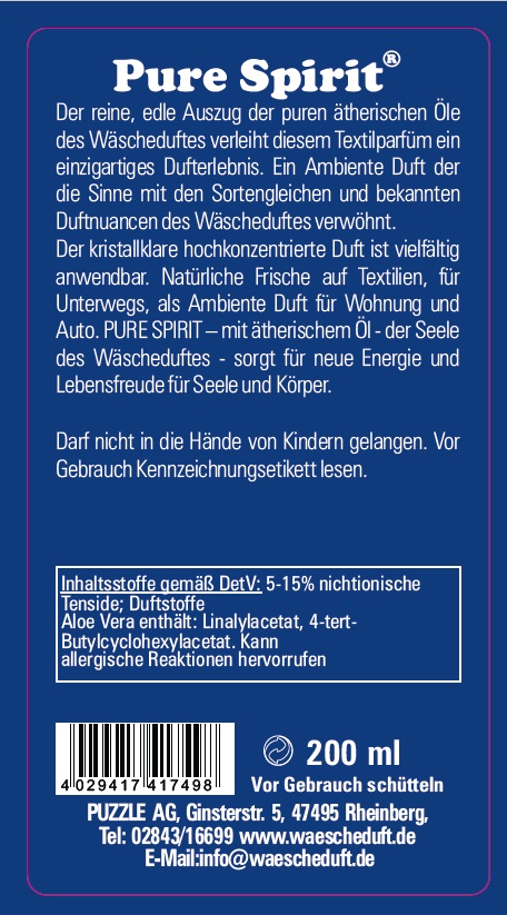 PURE SPIRIT® Wäscheparfüm - Textilparfüm Aloe Vera