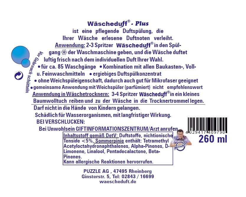 Wäscheduft® ist eine pflegende Duftspülung, die Ihrer Wäsche erlesene Duftnoten verleiht. Die Textilfasern werden durch die pflegenden Komponenten des Wäschebalsams gewebetief durchwirkt. Besonders gut geeignet für Mikrofaser-Textilien aber auch alle anderen Natur- und Syntetikfasern.